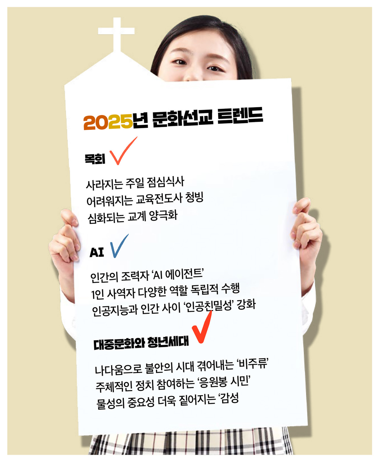 조성실 목사(교회와디지털미디어센터장)는 2025년에는 AI 에이전트가 인간의 조력자로 자리 잡고, 1인 사역자가 디지털 도구를 통해 다양한 역할을 독립적으로 수행하고, 인공지능과 인간 사이에 ‘인공친밀성’이라는 낯선 감정이 피어날 시대가 될 것으로 전망했다.
