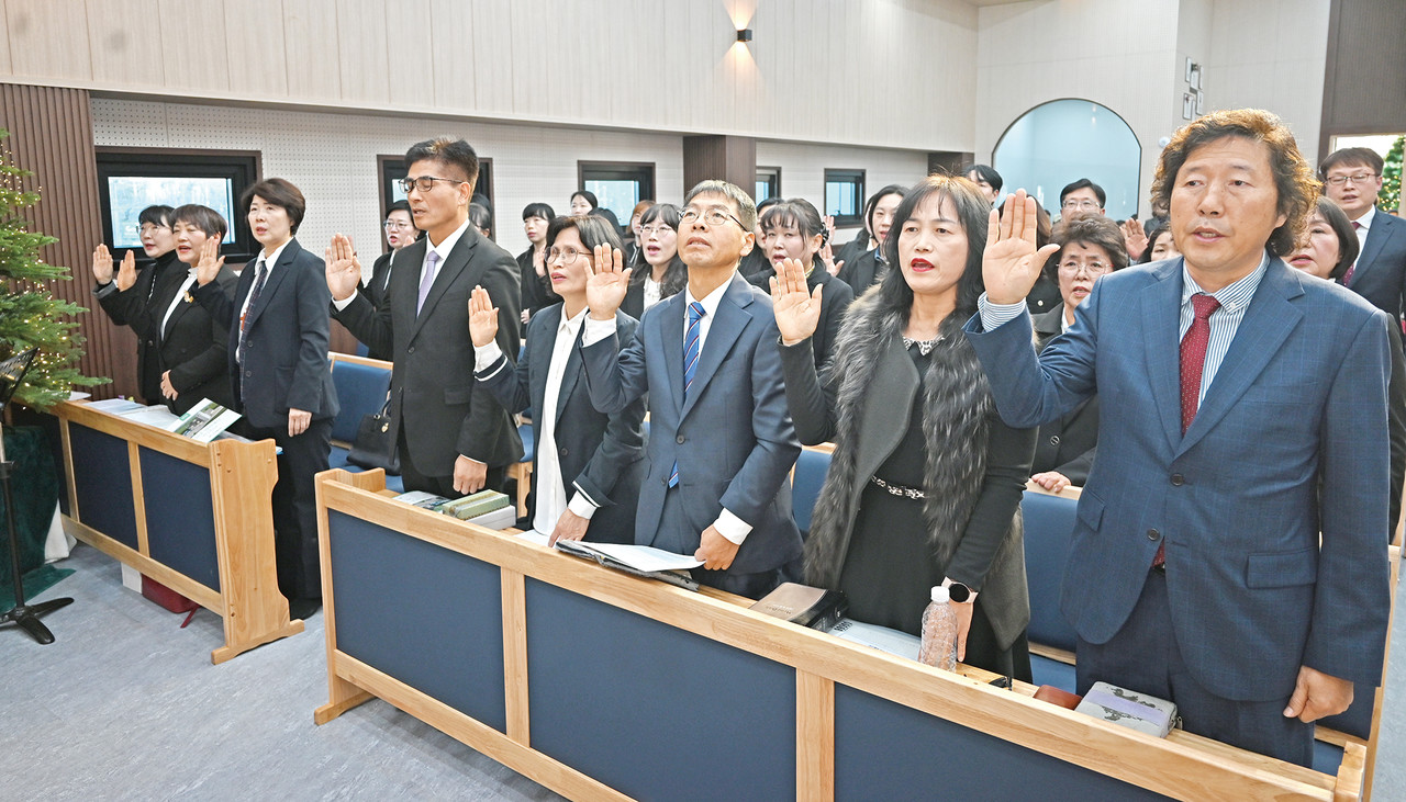 이날 예식은 한익현 목사의 집례로 지방회 부회장 이홍구 장로의 기도, 서기 이한구 목사의 성경봉독, 임직자 일동의 찬양, 지방회장 김병식 목사의 ‘하나님이 기뻐하시는 교회’란 제목의 설교, 전 총회장 권석원 목사의 축도로 진행됐다.