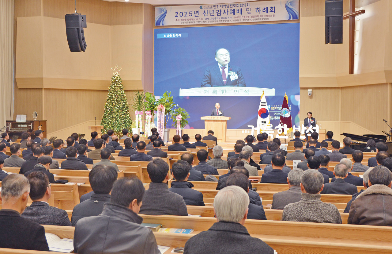 인천지역남전도회협의회(회장 김석진 장로)가 지난 1월 4일 성암교회(박해정 목사)에서 2025년 신년 감사예배 및 하례회를 열고 회개와 상생으로 다시 뛰는 성결교회를 만드는데 앞장설 것을 다짐했다.