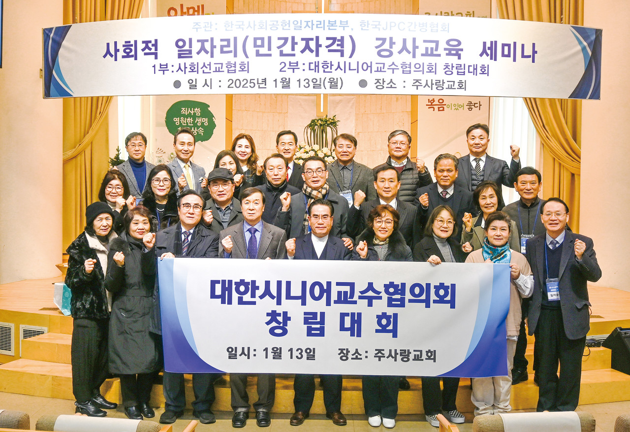 대한시니어전국교수협의회(대표회장 조이철 목사)는 지난 1월 13일 서울 강동구 주사랑교회(김승진 목사)에서 창립대회를 열고 본격적인 사역에 들어갔다.