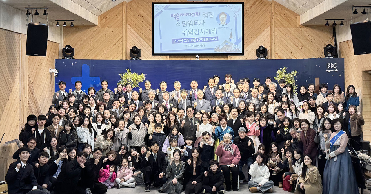 백송제자교회 설립 및 담임목사 취임예배는 지난 2월 16일 지방회 인사와 백송교회 성도 등 220여 명이 참석한 가운데 경인지방 중앙감찰장 김세일 목사의 사회와 부회장 김상배 장로의 기도, 지방회장 성인제 목사의 설교, 설립 및 담임취임식, 김원천 목사(대부천교회)의 축도 등으로 진행되었다.