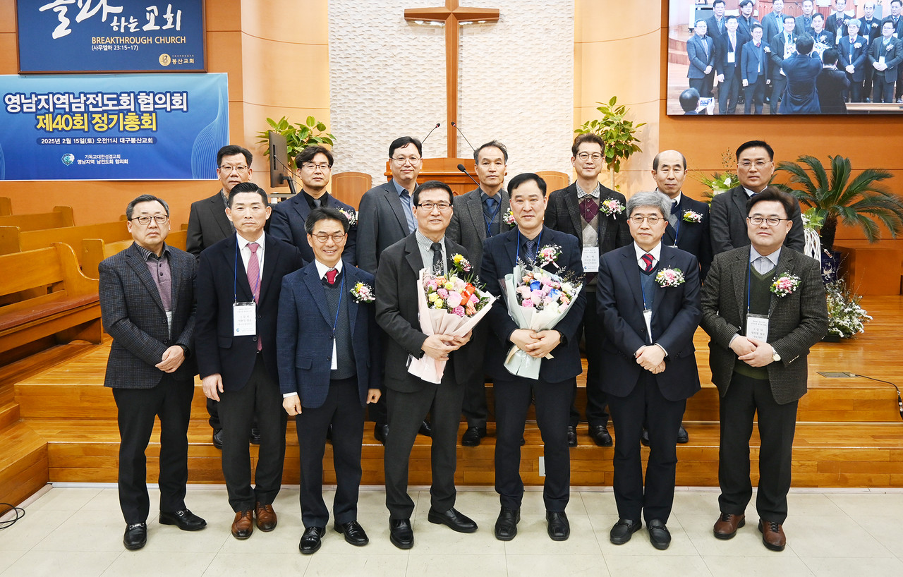 신임 회장 권정웅 장로는 “영남지역 발전과 선교 사업에 힘쓰고, 8개 지련 남전도회 회원들의 친목과 화합을 위해 최선을 다 하겠다”고 인사했다.
