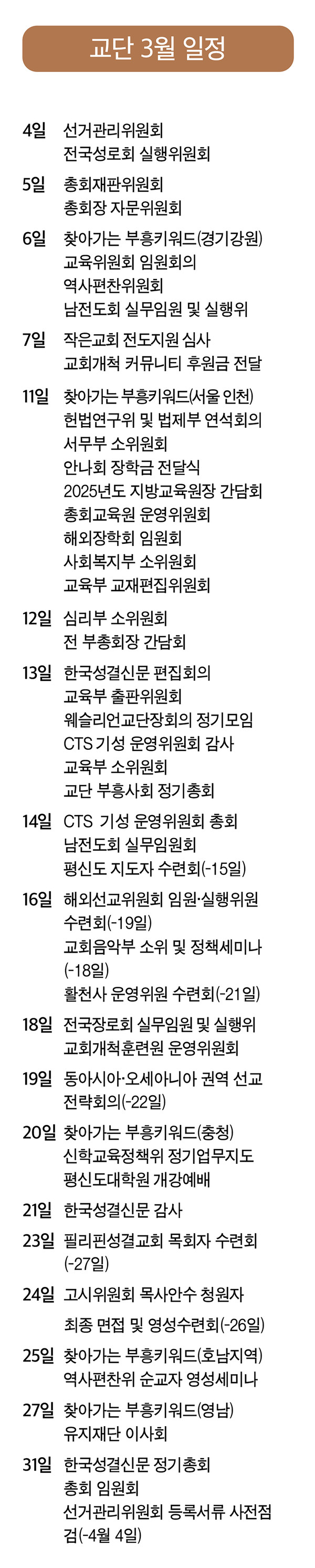 당신만 안 본 뉴스 큰나무교회 이시호 목사 담임취임 김민기 목사, 서울중앙교회 담임 취임 성결교회 목회자로 산다는 것은 코칭목회(1474호) 한기채 목사, 낙태합법화 반대 시위 동참 이사람-미얀마인 교회 개척한 갑김탕 전도사(뉴예루살렘교회) 성지 돌아보니 영성 새록새록