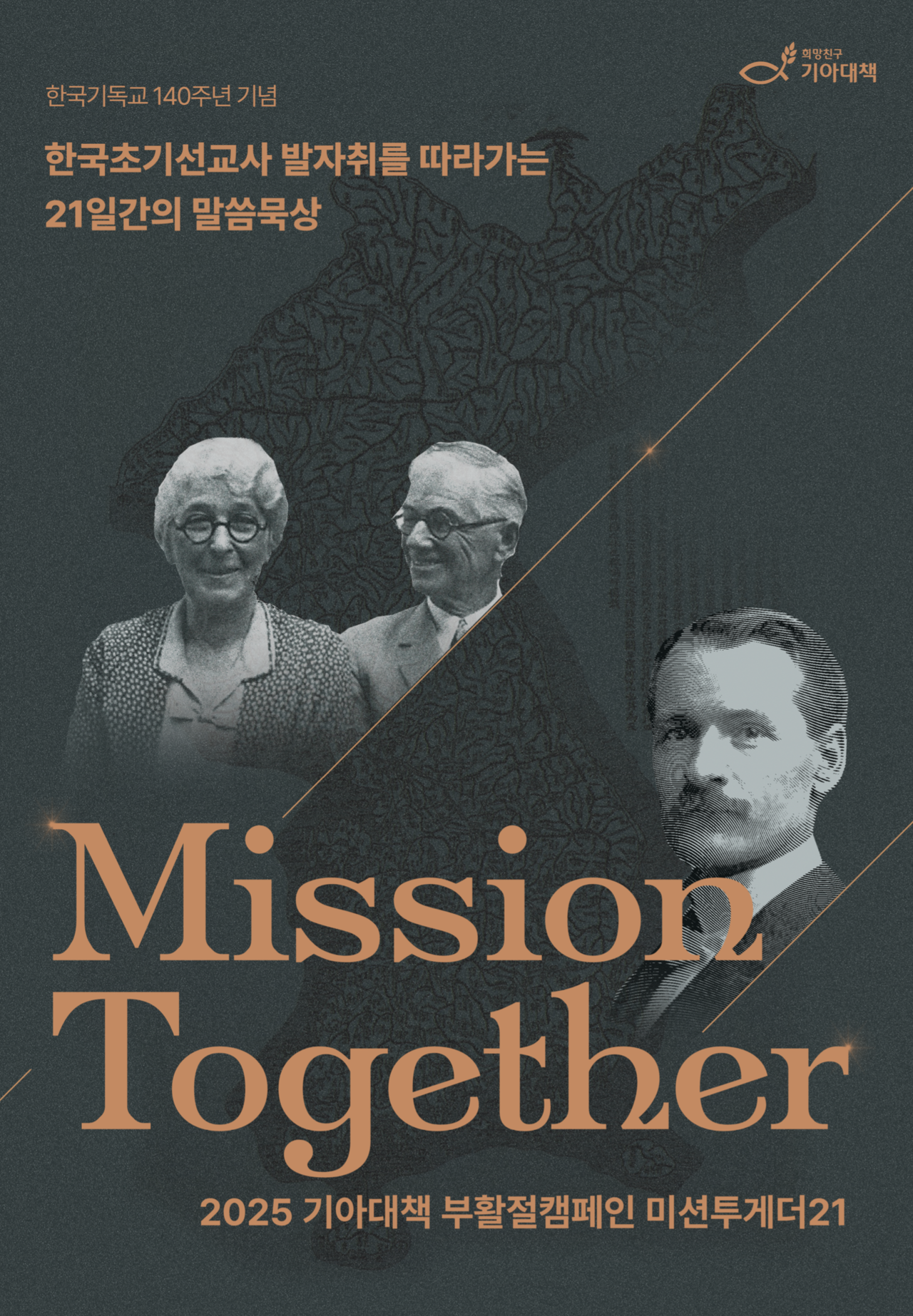 국내 최초 국제구호개발 NGO 희망친구 기아대책(회장 최창남)은 한국기독교 140주년을 맞아 2025 기아대책 부활절 캠페인 ‘미션투게더21’을 진행한다. 한국에서 복음을 전한 해외선교사의 발자취를 묵상하며, 복음이 필요한 지역을 지원하는 온라인 나눔프로젝트도 전개한다.