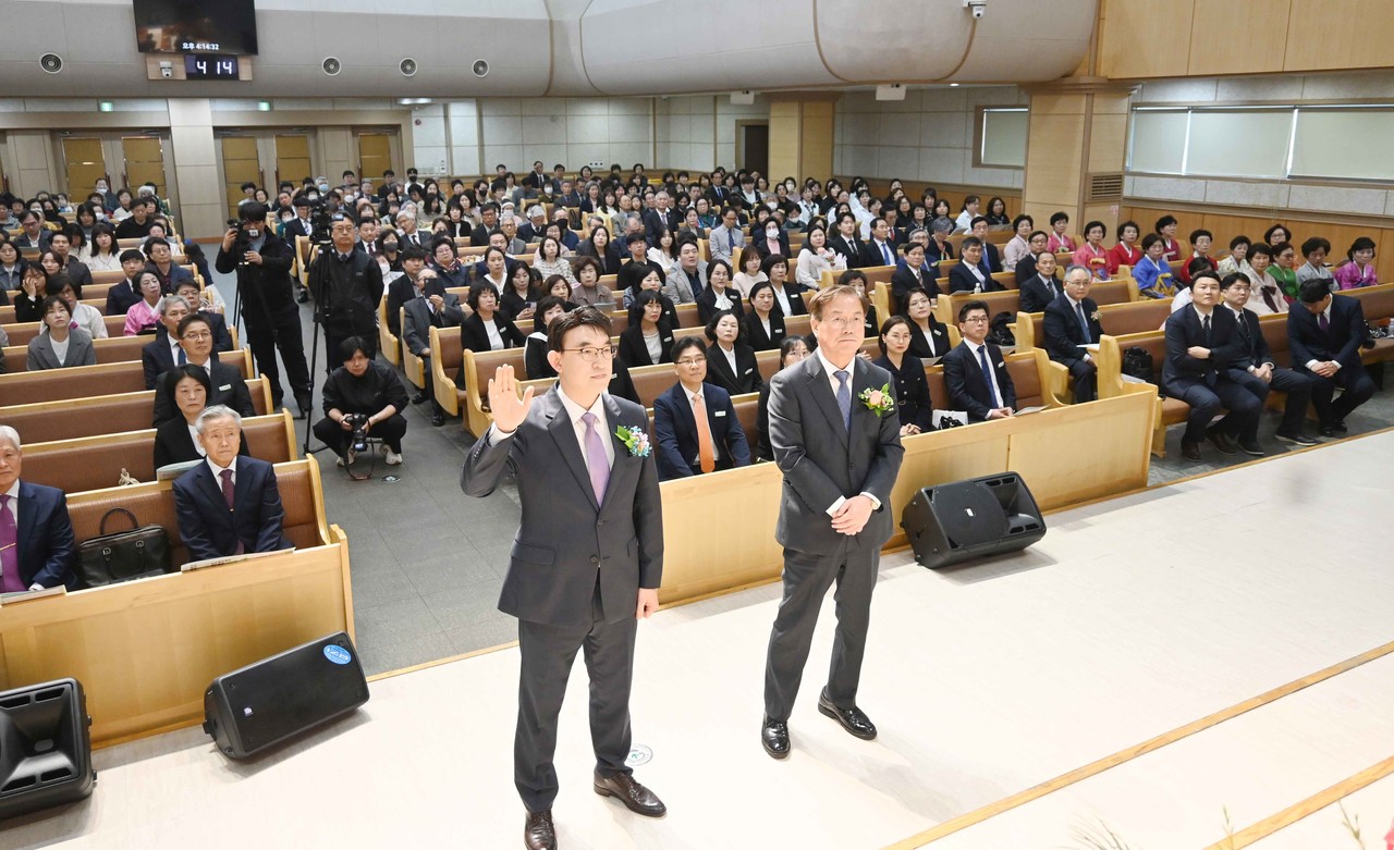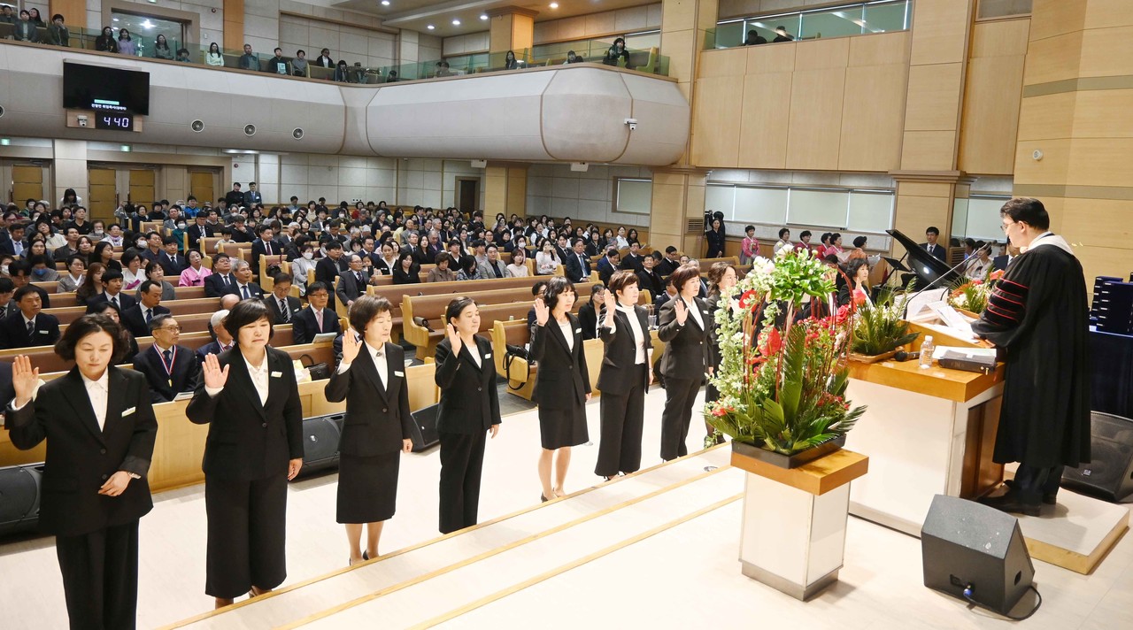 또 은퇴한 신앙선배들에 이어 권택만 민형기 씨가 신임장로로 장립되고 김연희 박말순 서경미 씨 등 13명은 권사로 취임했으며, 송화철 이원수 이재욱 장이환 전봉호 홍성우 씨 등 6명은 안수집사로 임직했다.