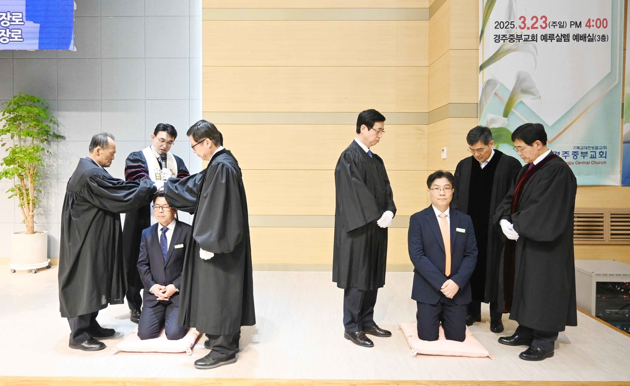 이어 김이겸 목사가 진형민 목사를 소개하고 서약을 받은 후 진형민 목사가 경주중부교회 위임목사임을 공포했다. 경주중부교회 윤영만 선임장로는 진 목사에게 위임패와 선물을 전달했다.