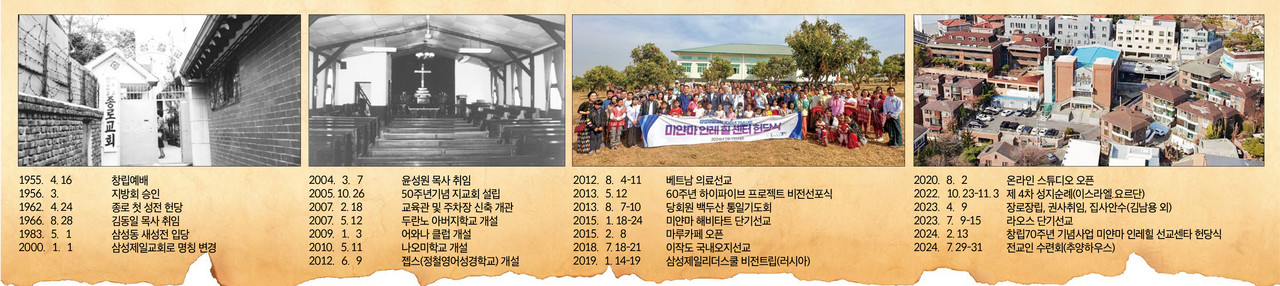 2025년, 창립 70주년을 맞이한 삼성제일교회는 새로운 도약을 준비하고 있다. 1955년, 신앙의 뿌리를 내린 이래 100년을 향한 큰 밑그림을 준비해온 교회는 하나님께서 인도하신 70년의 여정을 돌아보며, 이제 새로운 시대를 향한 사명을 품고 나아갈 준비를 마친 것이다.