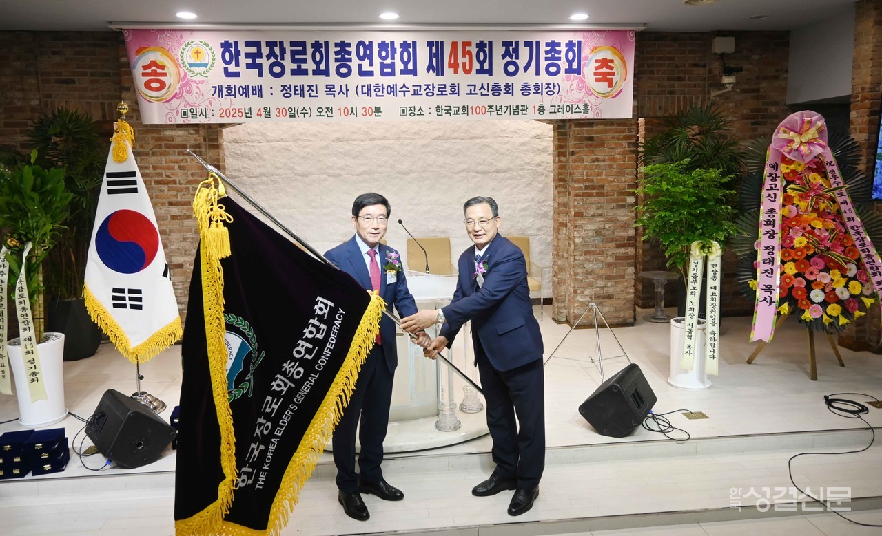 한국장로회총연합회는 지난 4월 30일 서울 종로 한국교회백주년기념관에서 제45회 정기총회를 열고 신임 회장에 전우수 장로(예장고신, 분당매일교회)를 선출했다.