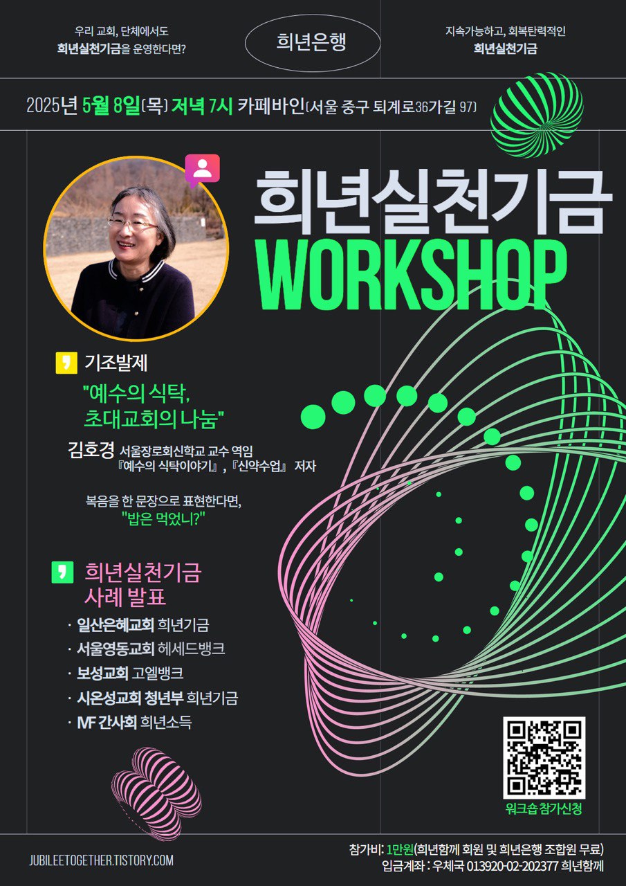워크숍 참가비는 1만 원이며, 희년함께 회원 및 희년은행 조합원은 무료다. 사전 신청은 QR코드를 통해 할 수 있다.