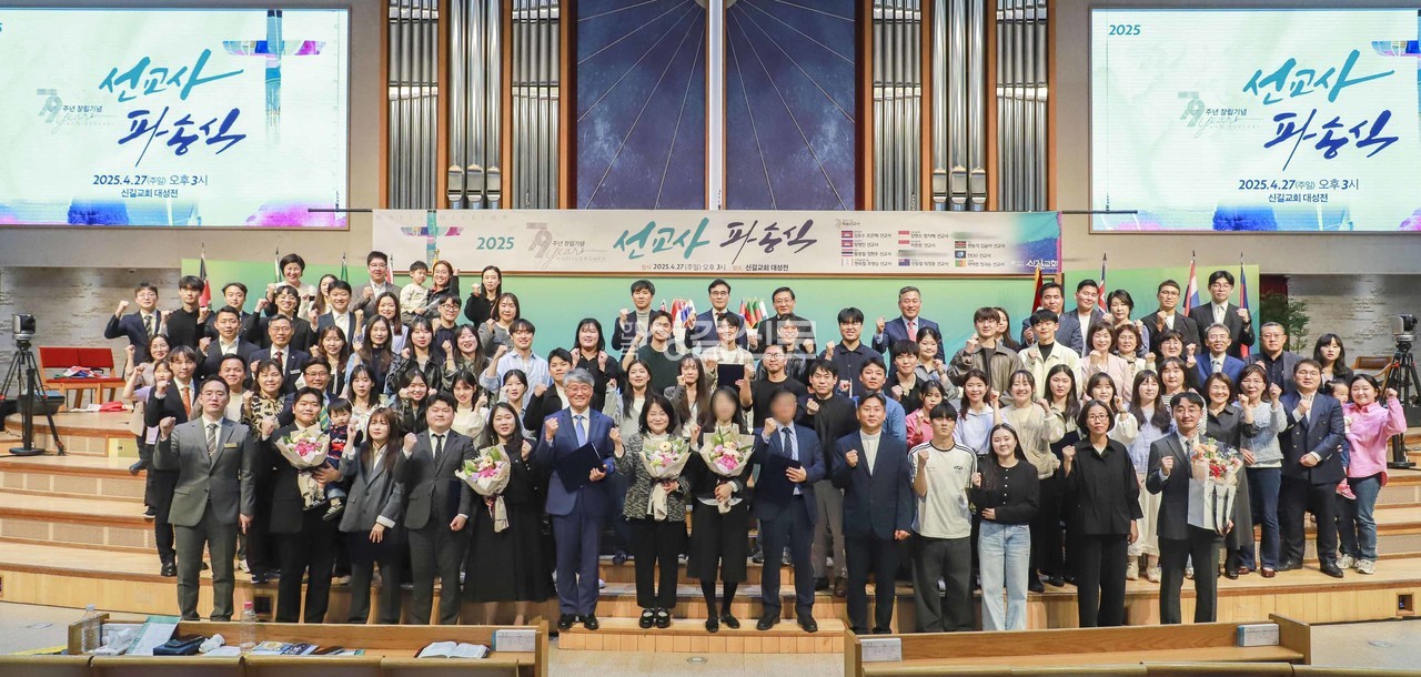신길교회(이기용 목사)는 지난 4월 27일 창립 79주년을 맞아 선교사 12가정을 파송했다. ‘모든 민족을 제자 삼겠다’는 창립 정신을 실현하기 위해 창립 주일에 선교사 파송식을 거행한 것이다.
