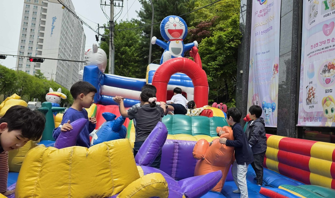 아이들을 위한 놀이시설도 풍성했다. 에어바운스만 8개가 설치됐다. 지하 1층과 지상 1층은 영유아들을 위한 미끄럼틀에어바운스, 시소 바운스의 놀이방이 운영됐다. 비전홀 2층은 초등학생용 에어바운스와 스템프 미션, 랜덤뽑기가 아이들을 맞이했고, 3층은 추억 남기 셀프사진관이 운영됐고, 4층은 마리오카드 농구 다트 축구 등 각종 게임이 즐비했다.