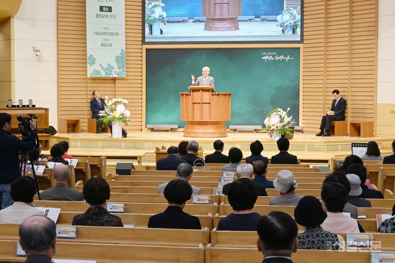 이날 1부 축하예배는 전 총회장 한기채 목사(중앙교회)의 인도로 부총회장 노성배 장로의 기도, 총회장 류승동 목사의 설교 등으로 진행됐다.