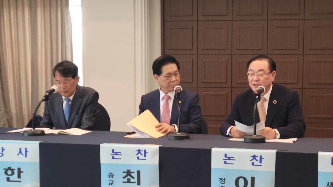 이영훈 목사(여의도순복음교회)는 발제에서 “애국가 가사 중 ‘하나님이 보우하사’라는 표현은 당시 지도자들이 독실한 기독교인이었음을 보여주는 증거”라고 설명했다. 그는 애국가가 단순한 국가(國歌)가 아니라, 분열된 민족이 하나 되길 바라는 기도이자 신앙적 메시지라고 강조하며 “교회는 화해와 평화를 선포하는 공동체가 돼야 한다”고 제언했다.