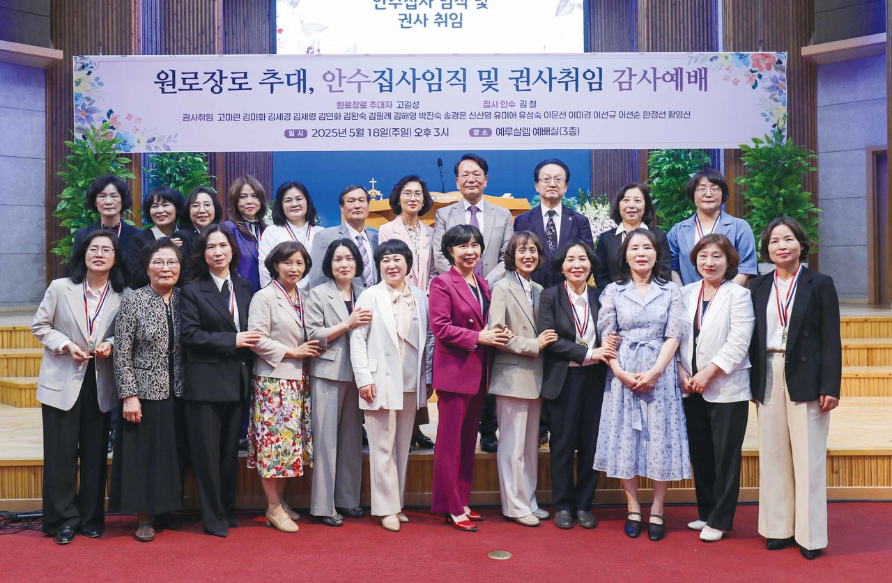 임직식에서는 김철 씨가 집사로 안수받고 고미란 김미화 김세경 씨 등 19명이 권사로 취임했다. 임직자들은 “교역자를 도와 교회를 섬기며 예배와 기도, 전도와 봉사의 모범을 보일 것”을 엄숙히 다짐했다. 지방회 목회자들은 모든 권사 취임자들에게 안수기도하며 이들의 사역을 축복했다.