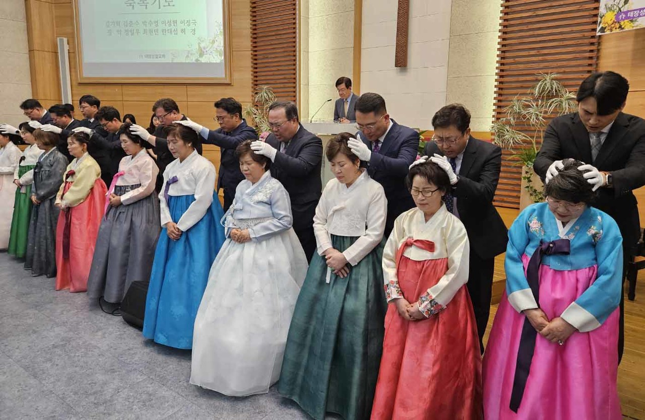 이날 태장교회는 강철규 서정은 최명숙 조순례 씨를 명예권사로, 김창배 씨를 명예안수집사로 추대했다. 또 고정아 김남숙 김영경 유혜순 윤수례 임영희 장영희 정연자 최옥희 허대순 씨가 권사로 취임하고, 한승국 씨가 집사안수를 받았다.
