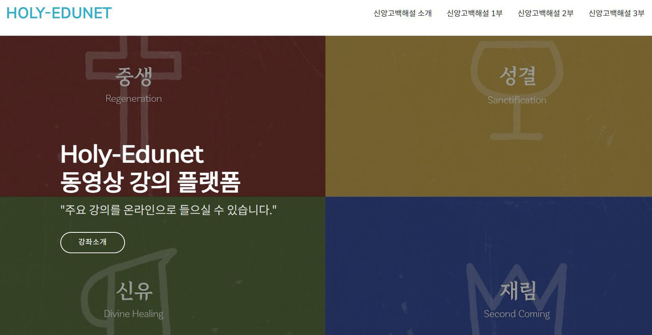 교단의 신앙고백서를 인터넷 강의로 쉽게 배울 수 있는 홈페이지 홀리에듀넷(eholynet.org/academy)가 지난 5월 26일 오픈했다. 신앙고백서 영상교재는 류승동 총회장의 공약 중 하나로 지난 1년 여의 준비 끝에 이날 첫 선을 보이게 된 것이다.