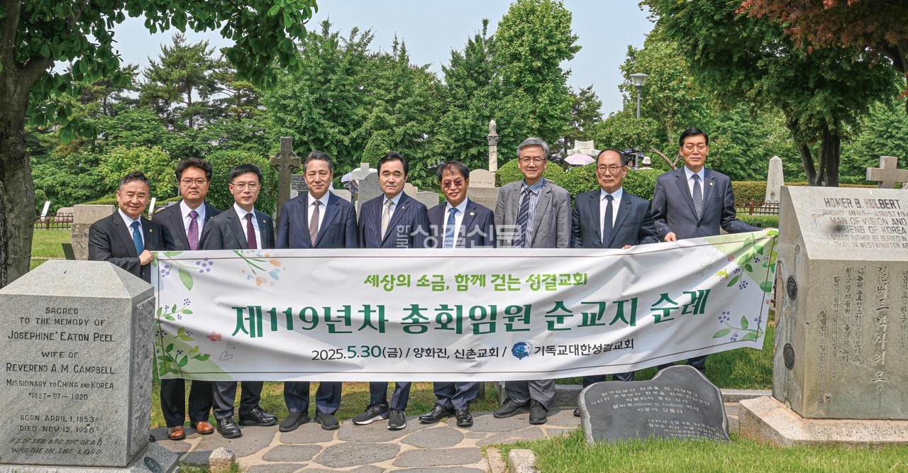 제119년차 총회임원들이 취임 후 첫 공식 일정으로 서울 마포구 양화진외국인선교사묘원을 찾아 교단을 위한 헌신을 다짐했다.