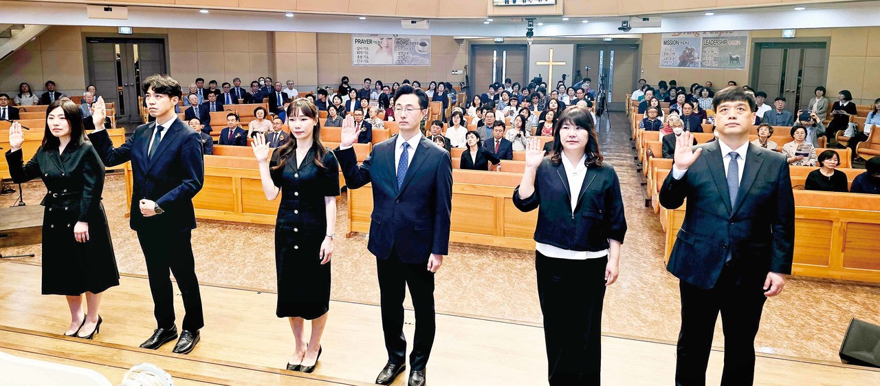엄숙한 분위기 속에서 진행된 임직식에서는 노승근 이성원 신민재 씨가 서약과 안수례를 거쳐 신임 장로로 장립되었다. 이들은 “몸과 마음을 다해 죽도록 충성하겠다”고 서약했다. 특히, 신민재 장로는 대광교회 최명휴 장로의 사위로 대를 이어 헌신을 다짐했다.