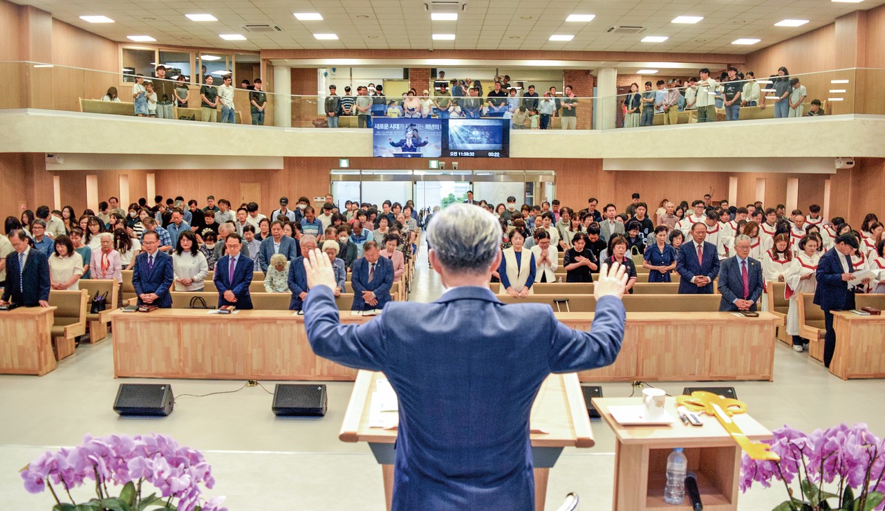 몇 주 뒤 은퇴를 앞둔 허성도 목사는 이날 목발을 짚고 강단에 올라 ‘나중 영광이 이전 영광보다 크리라’라는 제목으로 말씀을 전했다. 허 목사는 “무슨 일이든지 하나님이 은혜를 주시지 않으면 이룰 수 없다”며 “지붕이 무너지고 예배당을 잃은 그 순간부터 오늘 입당 감사예배에 이르기까지 모든 과정을 하나님이 친히 인도하셨다”고 고백했다.