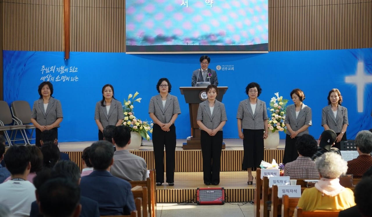 임직자들은 “교회와 하나님 앞에 부끄럽지 않게 헌신하겠다”는 마음으로 서약에 임했으며, 성도들은 큰 박수로 이들의 결단을 축복했다.