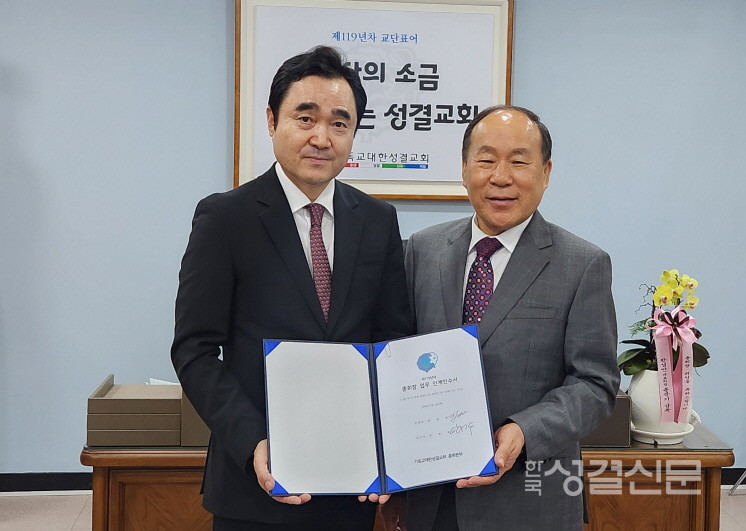 총회장 안성우 목사가 지난 6월 16일 총회본부 총회장실에서 직전 총회장 류승동 목사와 업무 인계인수식을 갖고 공식 업무에 들어갔다.