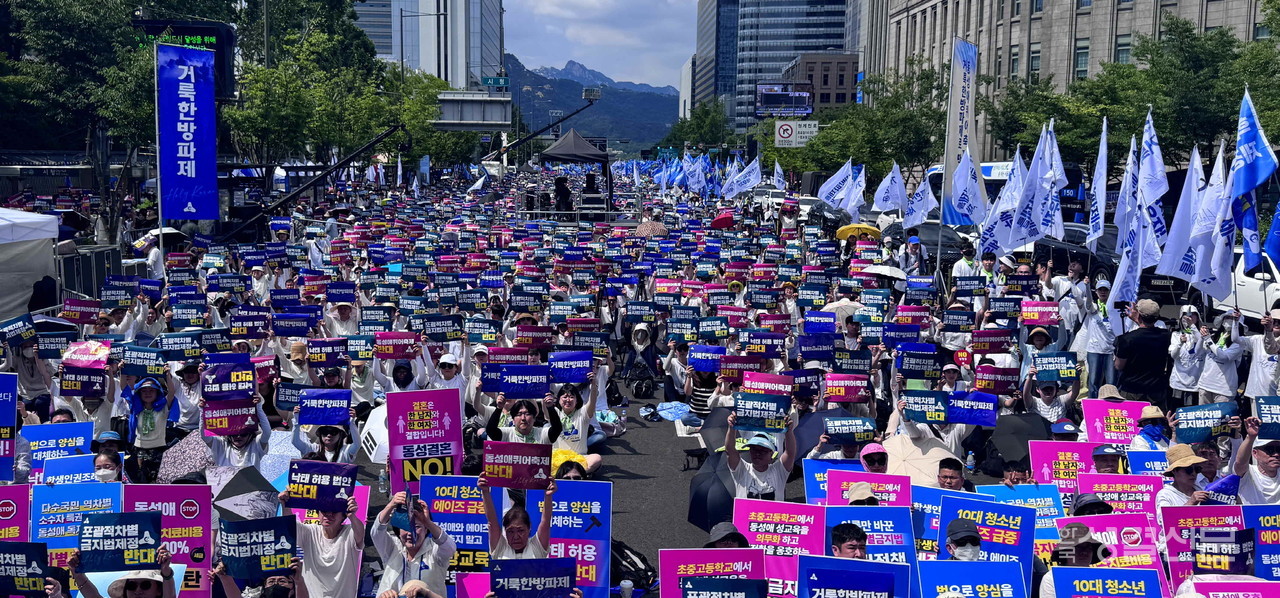 지난 6월 14일 서울 광화문과 시청 일대에서 진행된 ‘제11차 거룩한방파제 통합국민대회’는 차별금지법, 동성혼 합법화, 학생인권특별법, 인권정책기본법안 등에 반대하는 대규모 집회로 주최 측 추산 30만 명(경찰 추산 1만 5,000명)의 성도들과 시민이 함께하며 건강한 가정과 다음세대를 지키기 위해 다 함께 목소리를 높였다.