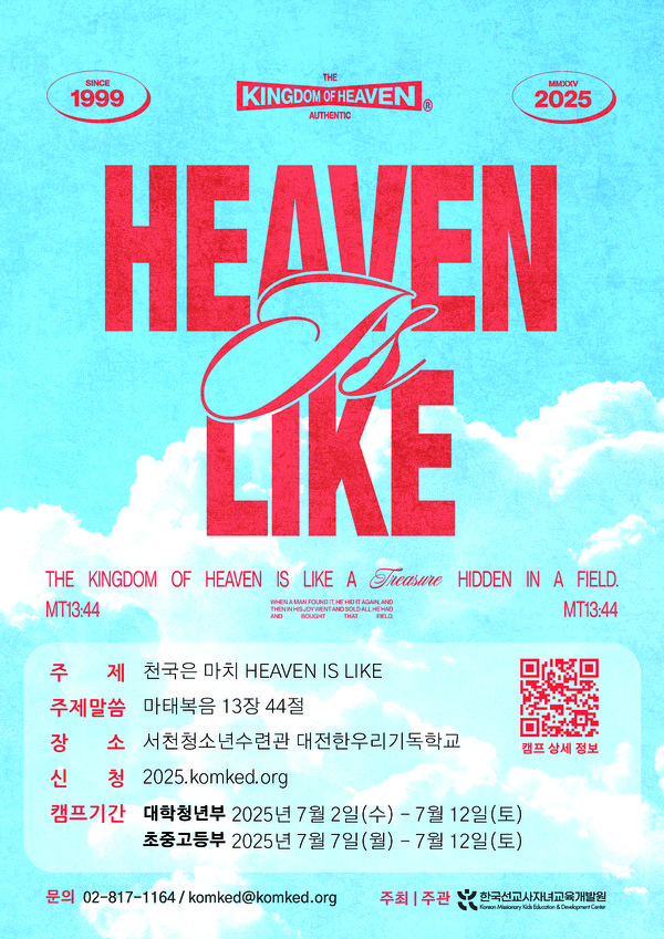 올해 수련회의 주제는 ‘천국은 마치(HEAVEN IS LIKE)’로, 예수님의 천국 비유를 묵상하며 MK들이 천국 백성으로서의 정체성을 회복하고, 복음 안에 소망을 품는 시간을 마련할 예정이다.