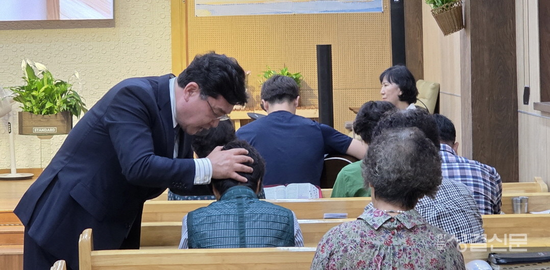 설교 후에는 윤 목사와 부흥사회 사무총장 신학철 목사가 부흥회에 참석한 성도들에게 일일이 안수기도를 했다.