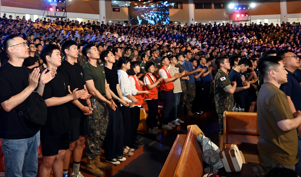 또 이번 성회에서는 역사상 처음으로 기념식이 진행됐다. 참석자들은 6·25 75주년 기념 영상을 시청하고, 전 장병이 함께 ‘꽃이 피리라’를 제창하며 전쟁의 아픔과 평화의 소망을 노래했다.