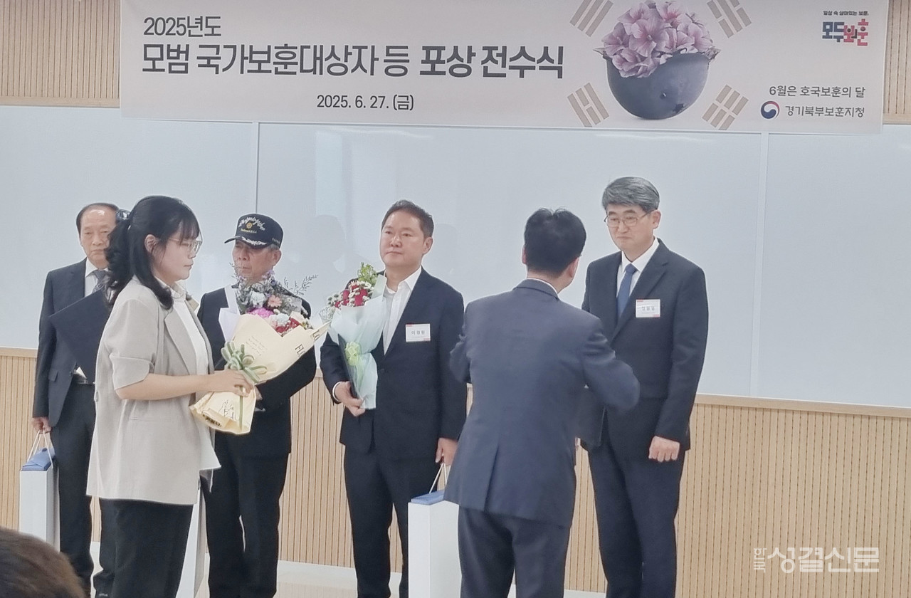 정원영 목사(순례자의교회)가 국가보훈의 달의 맞아 지난 6월 27일 경기북부보훈지청에서 열린 2025년도 모범 국가보훈대상자 등 포상 전수식에서 국가보훈부장관 표창장을 받았다.