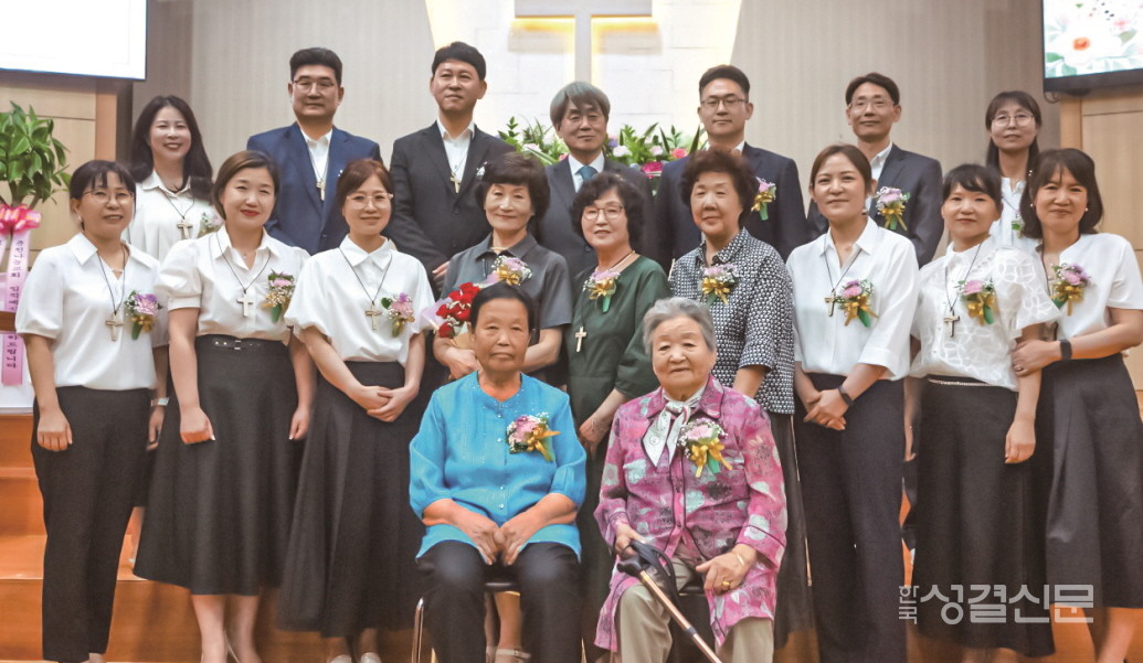 이어 손광오 목사(강변제일교회)가 임직식을 위해 기도한 후 조보경 황화자 김영숙 권사가 명예권사로 추대됐으며, 김순복 이선화 최미순 신경애 유항숙 김진아 이향남 박수연 씨가 권사로, 정상덕 김진환 김동진 최준용 씨가 안수집사로 각각 세움을 받았다.