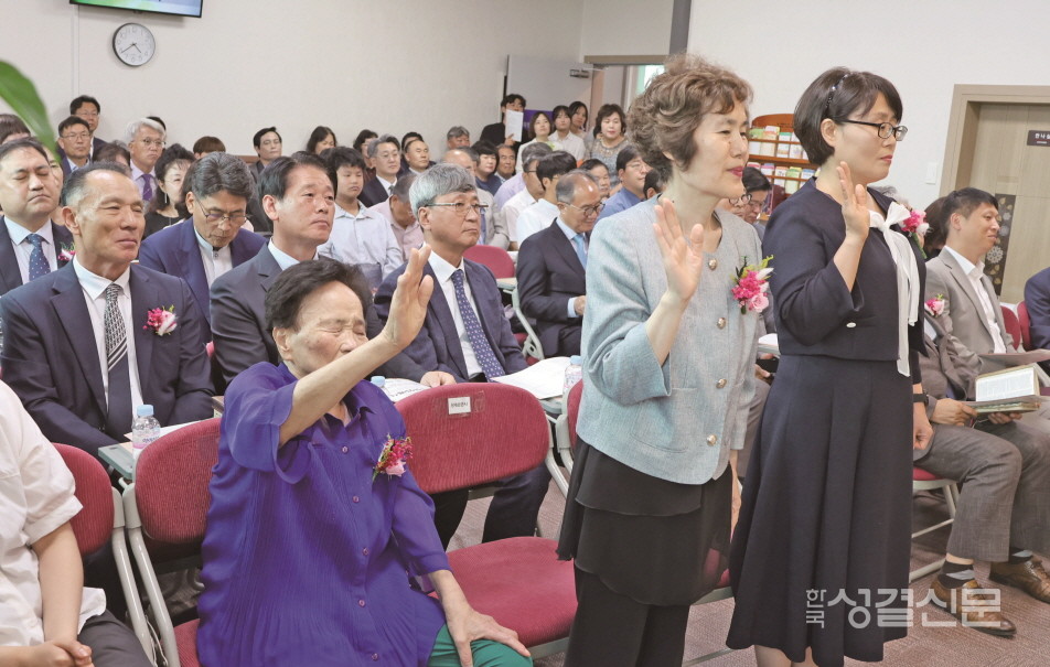 김선자 권사는 임직자들을 대표해 “하나님 나라를 위해 더욱 헌신하는 권사가 되겠다”고 말했고, 직전 지방회장 박문일 목사의 축도로 마쳤다.