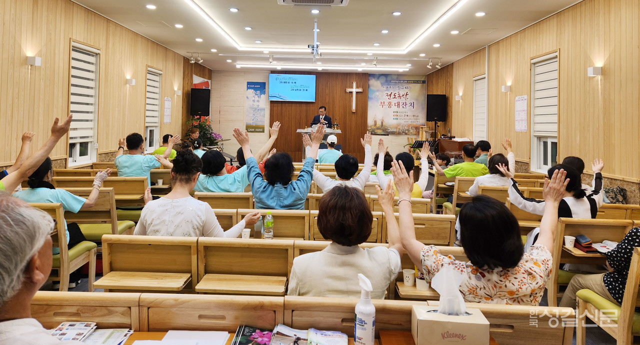 서울중앙신학교(교장 한기채 목사) 제43기 국제전도폭발 부흥대잔치가 지난 7월 9~11일 시온교회(윤승호 목사)에서 진행됐다. 작은교회 부흥과 전도훈련을 도모한 이번 국제전도폭발 부흥대잔치에는 17명의 전도대원이 참여했다.
