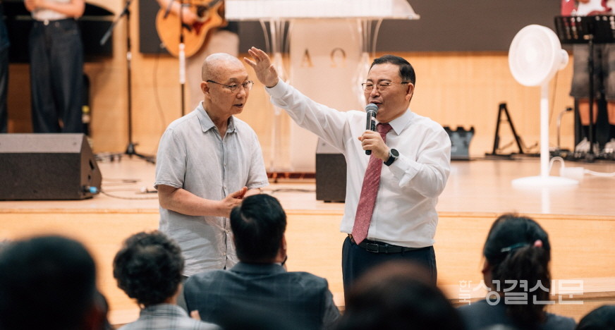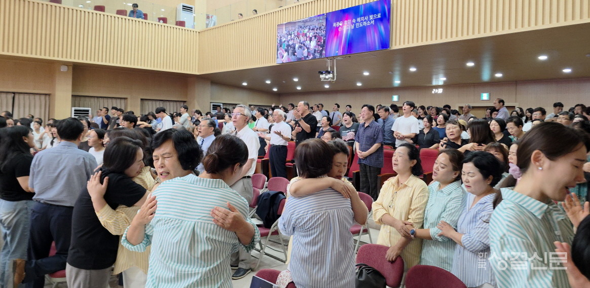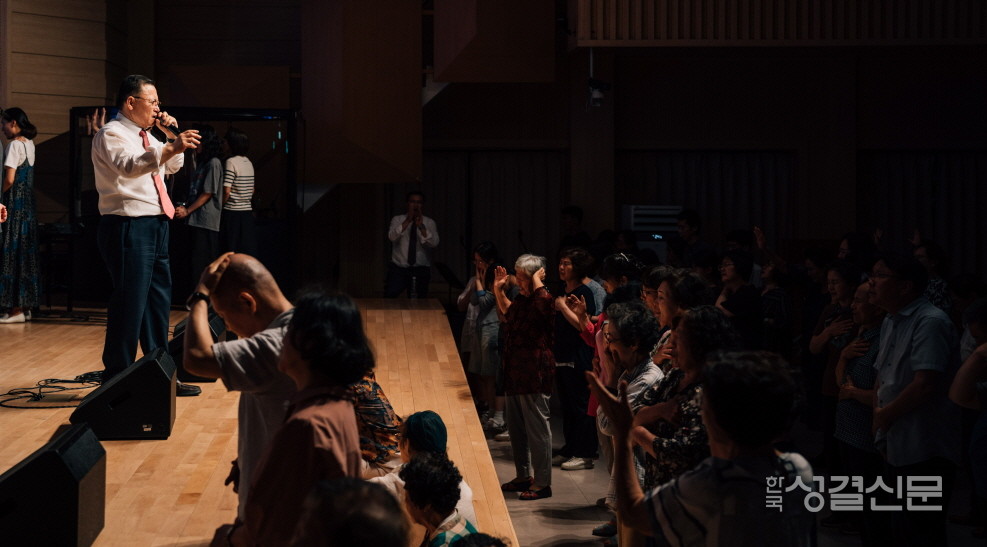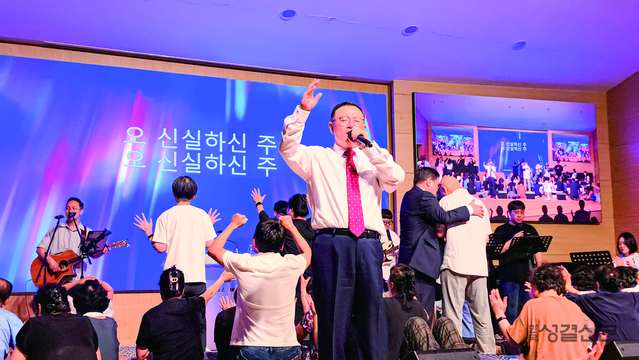 신 목사는 그러면서 “예수님의 옷자락만 잡아도 능력이 빠져나간다”는 말씀을 전하며 믿음으로 나아가는 자에게 반드시 치유와 회복이 임한다고 선포했다. 설교 후에는 병자와 성령 체험을 원하는 성도들을 강단 앞으로 초청해 안수기도를 했다. 이후에도 기도의 불길은 집회 내내 밤늦도록 계속 이어졌고, 찬양과 눈물이 어우러진 은혜의 물결이 경건관을 가득 메웠다.