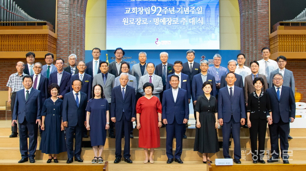 설교 후에는 교회를 위해 땀흘려 헌신해온 장로 5명을 원로 및 명예로 추대하는 예식도 가졌다. 추대식에서는 김강현 남충희 공영성 장로가 원로장로로 정윤성 김완동 장로가 명예장로로 각각 추대되었다.