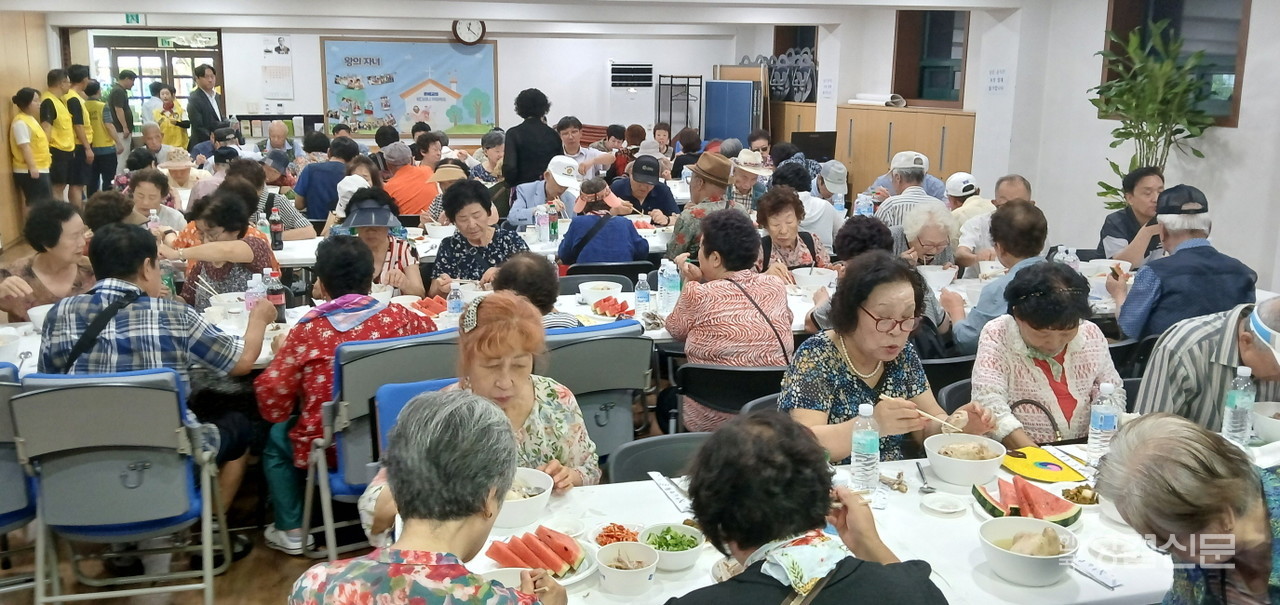 은혜교회(정순출 목사)는 지난 7월 26일 지역 어르신들을 위한 삼계탕 나눔 경로 잔치를 개최했다.