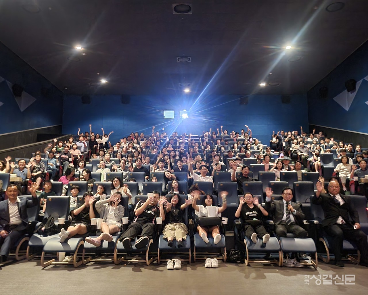온 성도와 함께 지역주민을 초청해 진행된 이날 영화관람은 올해 여름행사를 위해 기도와 후원을 해준 성도들, 그리고 헌신한 교사들과 담당자들에게 감사의 마음을 전하고 지역주민들에게 복음이 흘러가게 하기 위한 취지로 마련됐다.