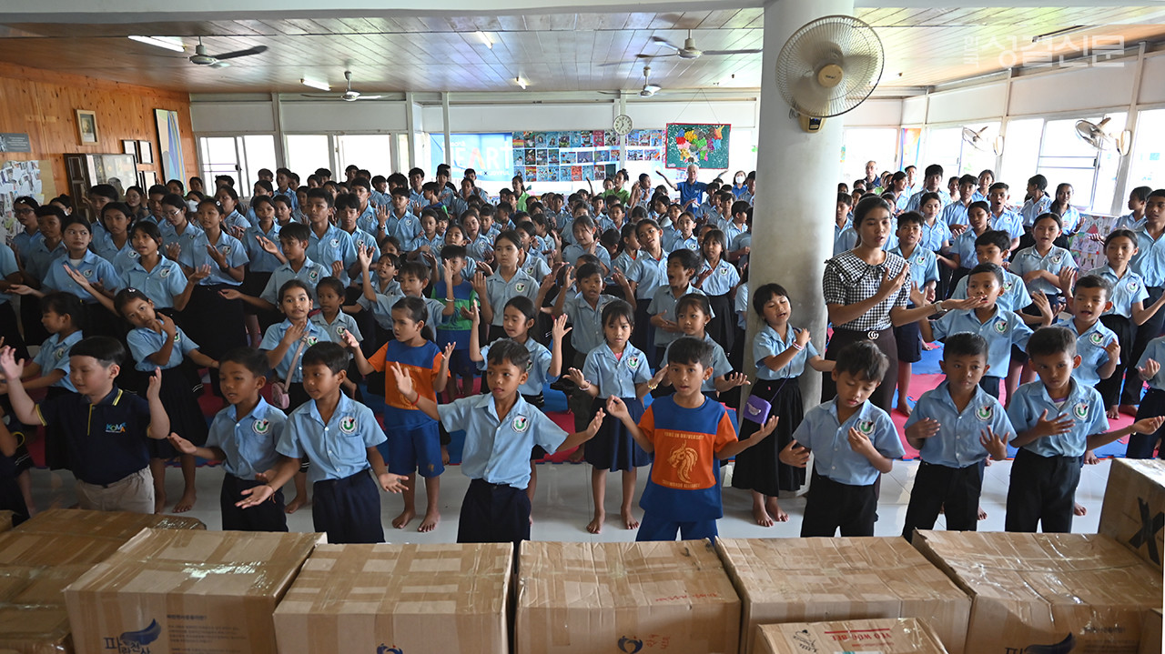 이원희·김학련 선교사(교단 협력) 부부가 세운 기독학교 조이풀스쿨은 유치원부터 중학생까지 250여 명이 재학 중인 현지 인가 교육기관으로, 캄보디아 교육과정을 성경적 세계관으로 가르치고 있다. 팀은 이재호 선교사와 협력해 아이들을 섬기는 데 집중했다.