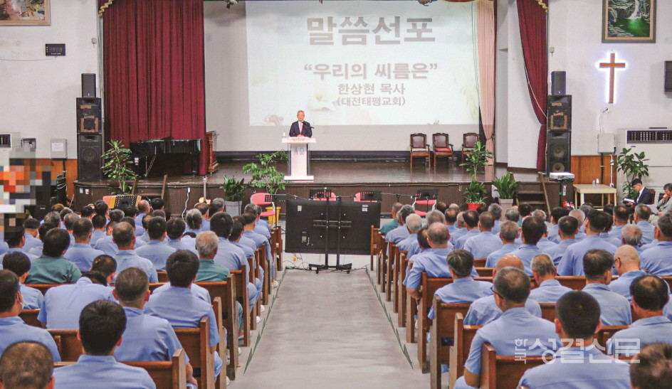 이번 예배는 대전교도소 내 600여 명의 재소자가 참석한 가운데 열렸으며, 교회 성도 12명이 동행해 함께 예배를 섬겼다. 예배는 염대열 안수집사의 사회와 임재형 장로의 기도로 시작됐다. 이어 재소자 정명진 형제가 찬양 ‘주의 손이’로 신앙을 고백했고, 대전태평교회 하늘소망팀이 아코디언과 플루트로 특송을 올려 은혜를 더했다.