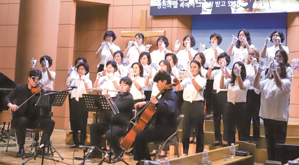 4060 여자 성도로 구성된 세이브원소울 합창단(지휘 이윤태)은 ‘꽃밭에서’ ‘바람의 노래’ ‘인생’ ‘나 하나 꽃피어’를 부르며 잔잔한 감동을 주었다.