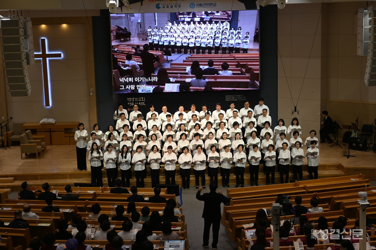 대구지방 모교회인 봉산교회(최성주 목사) 연합찬양대는 찬송가 ‘나의 기쁨 나의 소망되시며’와 ‘구주 예수 의지함이’를 성가곡으로 편곡한 2곡을 아름답고 정제된 화음으로 선보였다.