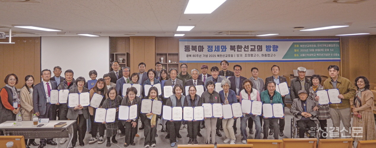 북한선교위원회 통일선교훈련원(원장 유병욱 목사) 2학기 수료식이 지난 10월 30일 서울신대 100주년기념관에서 열려 복음통일의 일꾼을 세웠다. 이날 입문 9기(13명), 심화 8기(16명), 전문 3기(12명) 과정을 수료한 41명이 수료증을 받았다.
