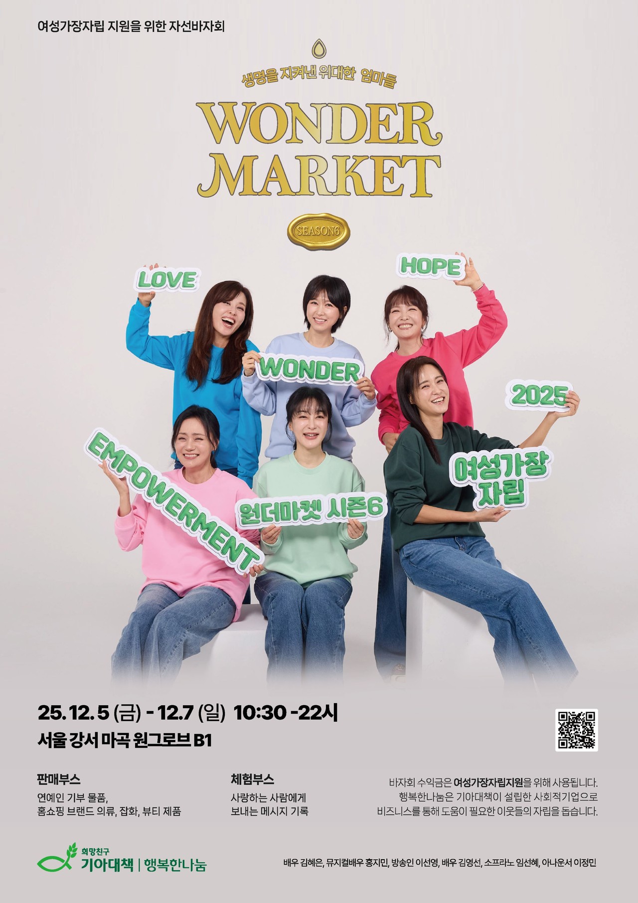 원더마켓은 ‘생명을 지켜낸 위대한 엄마’라는 슬로건 아래, 국내 저소득 여성 가장과 이주배경 여성 가장의 자립을 지원하는 가치소비형 나눔 캠페인이다. 올해 6회차를 맞은 이번 행사에는 기아대책 홍보대사들이 기획부터 현장 운영까지 직접 참여하며 나눔과 연대를 실천한다.