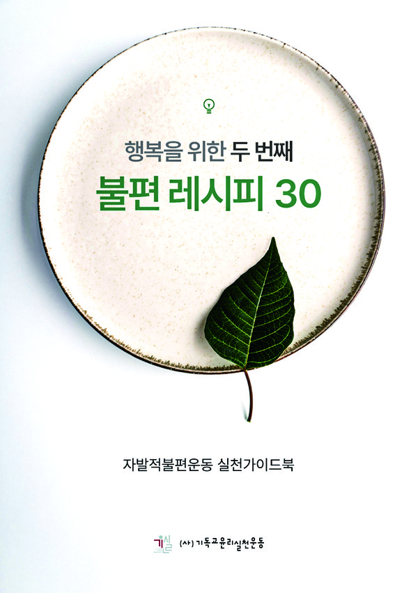 기독교윤리실천운동(이사장 지형은 목사) 자발적불편운동본부(본부장 이창호)가 신간 『행복을 위한 두 번째 불편 레시피 30』을 펴냈다.