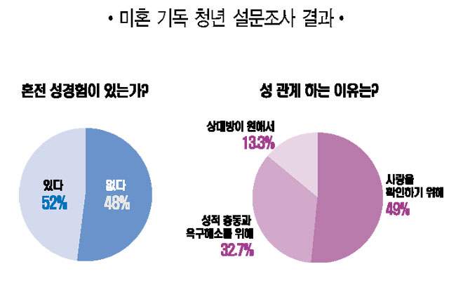한국교회탐구센터 설문조사, 기독청년 절반 혼전 성경험 가져