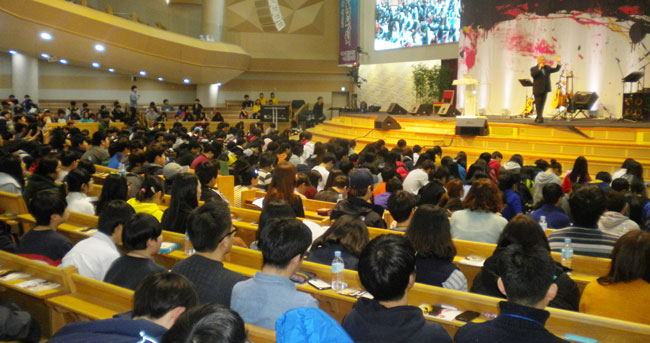 집회 기간 대예배실 1층 좌석은 참가자들로 가득 찼고 자리에 앉지 못한 청소년들은 강단 앞 바닥에 앉아 말씀을 들을 정도로 성황을 이뤘다.