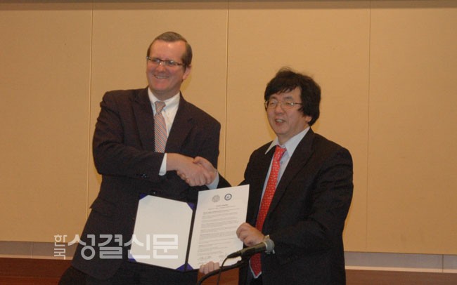 한동대학교(총장 장순흥 박사)와 미국 휘튼대학(총장 필립 라이켄 박사)은 지난 1월 20일 63컨벤션센터에서 크리스천 리더 육성을 위한 협력 의향서를 체결했다. 양 대학은 이번 의향서를 통해 학생 및 교수 교환, 교사자격증 프로그램 등 학술정보와 기독인 교수 개발에 협력하게 된다.