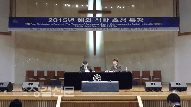 서울신학대학교(총장 유석성 박사)는 지난 3월 20일 성결인의집 존 토마스홀에서 해외 석학 초청 강좌를 열었다. 이날 강좌에서는 서울신대 석좌교수인 데이비드 번디 박사가 ‘기독교공국으로부터 오순절로’라는 주제로 마틴 웰스 냅과 급진적 성결운동의 오순절적 기독론에 대해 발제했다.