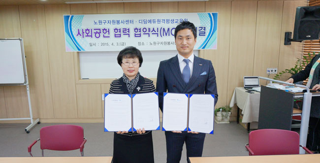 디딤에듀원격평생교육원(원장 구재성)와 노원구자원봉사센터(센터장 왕난옥)는 최근 서울 노원구자원봉사센터 회의실에서 ‘사회공헌 협력 협약’을 체결하고 새로운 사회공헌 사업들을 시작했다.