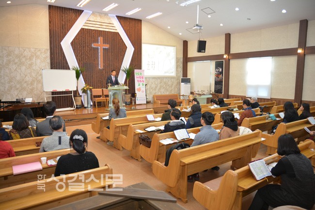 주일 낮 예배인데도 정 목사는 유머 하나 없이 진지하게 강해설교를 했다. 성도들은 이곳저곳 성경구절을 찾아 함께 읽고, 저마다 볼펜을 손에 쥐고 메모하며 설교에 집중했다. 초등학생, 중고등학생들도 익숙한 듯 설교말씀에 귀를 기울였다. ‘말씀의 본질’에 집중하는 정문수 목사의 목회스타일을 그대로였다.